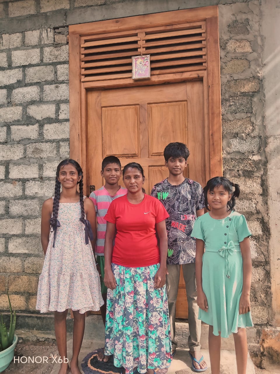 Her eldest daughter completed her G.C.E. Advanced Level examination in 2023. Due to financial difficulties, she was unable to continue her higher studies and is now working in a textile shop, earning LKR 20,000 per month. The two younger daughters are currently studying in Grades 09 and 07.
